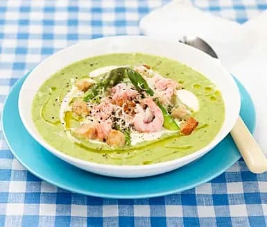 Sparrissoppa med räkor och pepparrot
