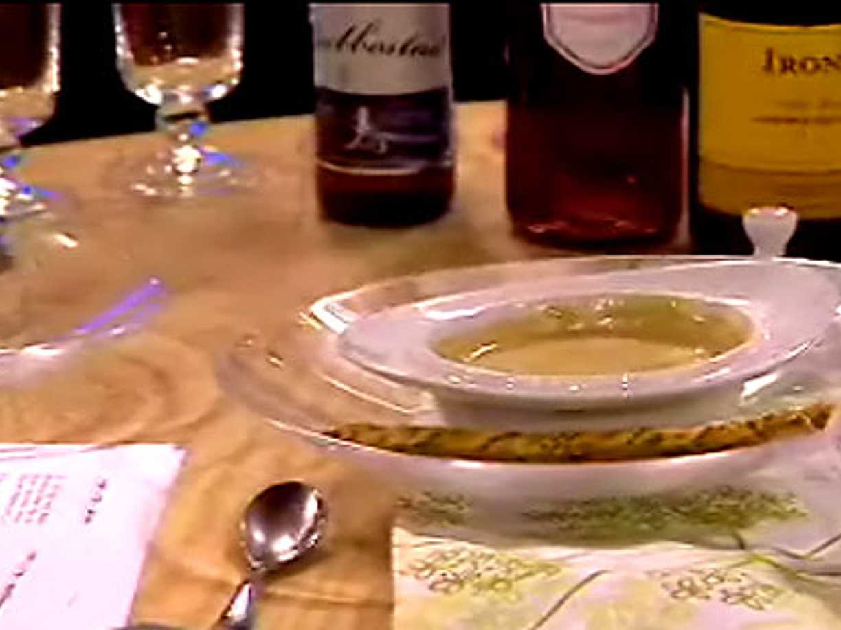 Ramslökssoppa med frasig parmesanpinne