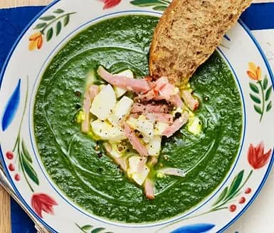 Spenatsoppa med ägg och skinka