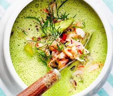 Kall avokadosoppa med räkor