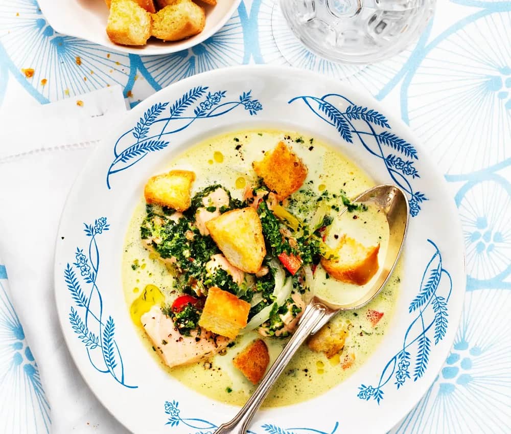 Lax- och spenatsoppa