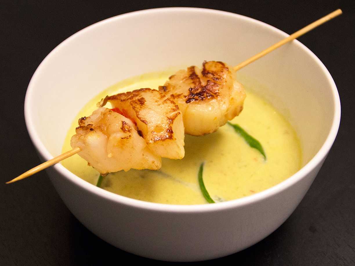 Pilgrimsmusslor med gurksoppa