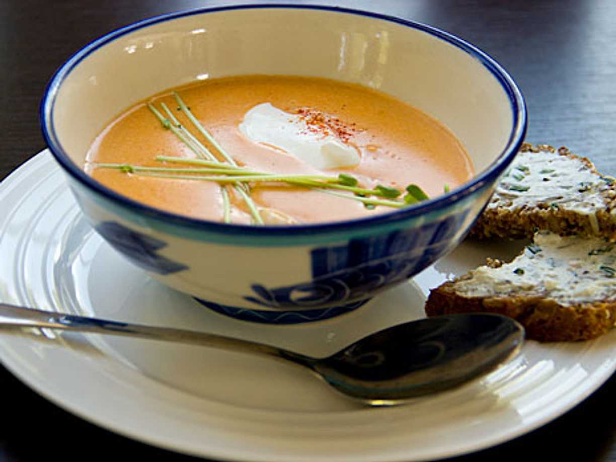 Rostad paprikasoppa med sommarsallad