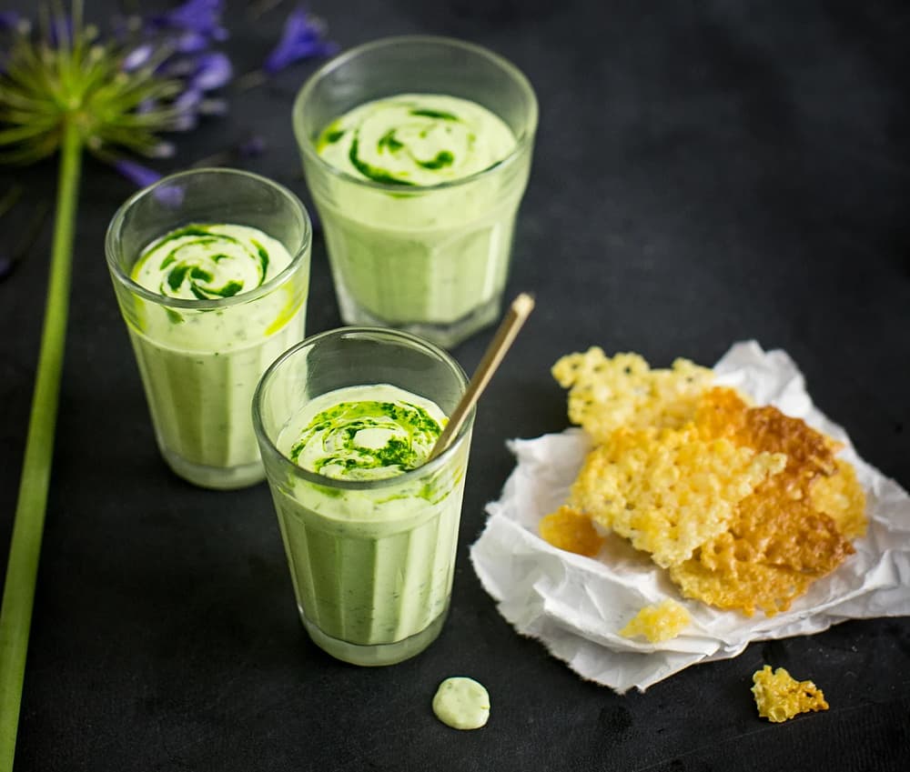Svalkande avokadosoppa med chips av Västerbottensost
