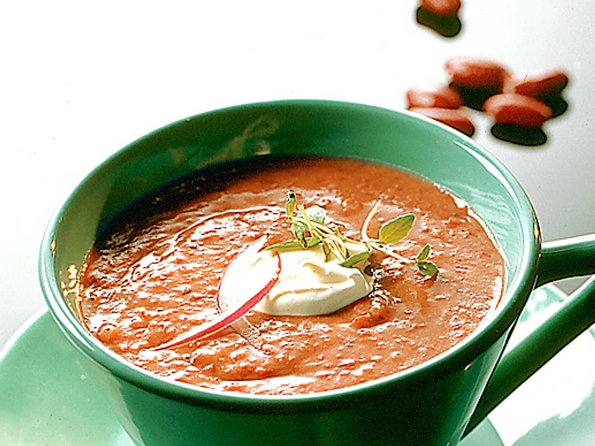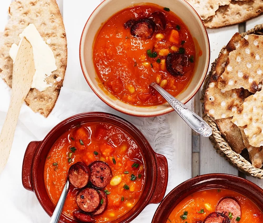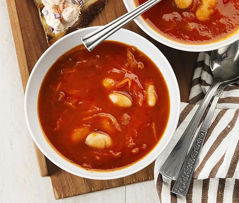 Tomatsoppa med vita bönor och ostkorv