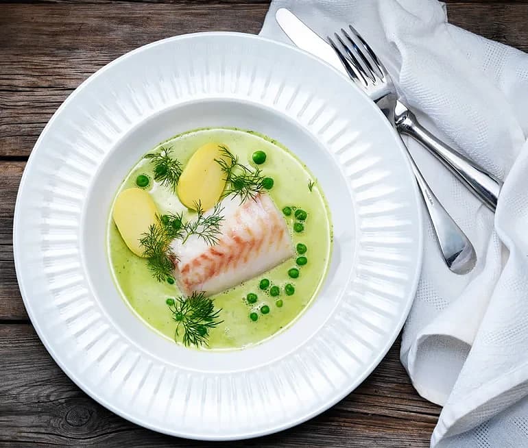 Ugnsbakad torsk i dill och misobuljong