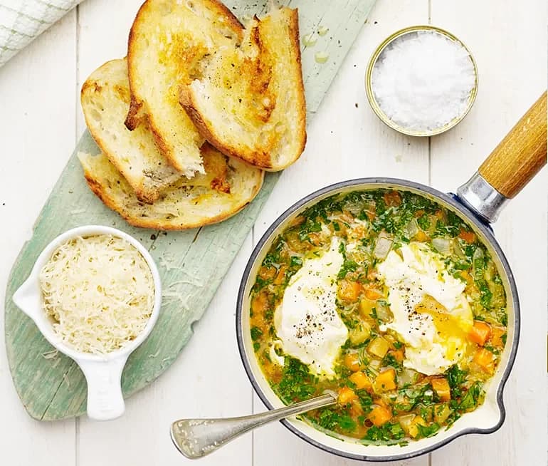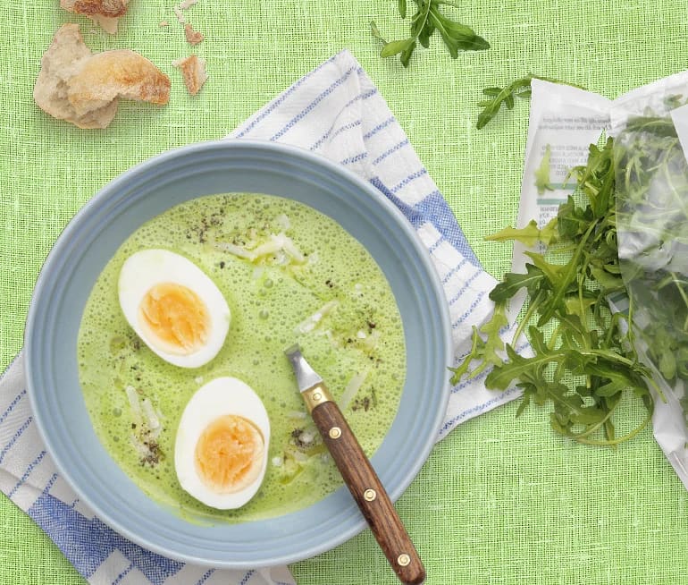 Ruccolasoppa med parmesan och ägghalvor