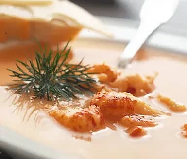 Kräftsoppa, serveras med en skiva kärlek