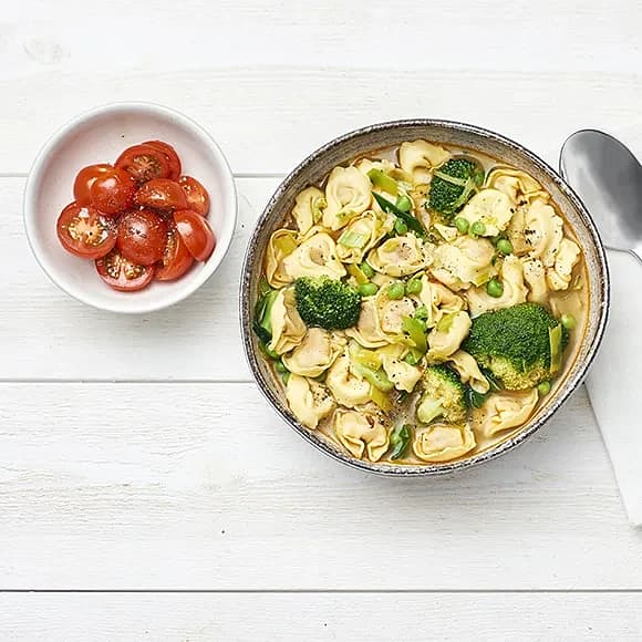 Tortellinisoppa med broccoli och purjolök