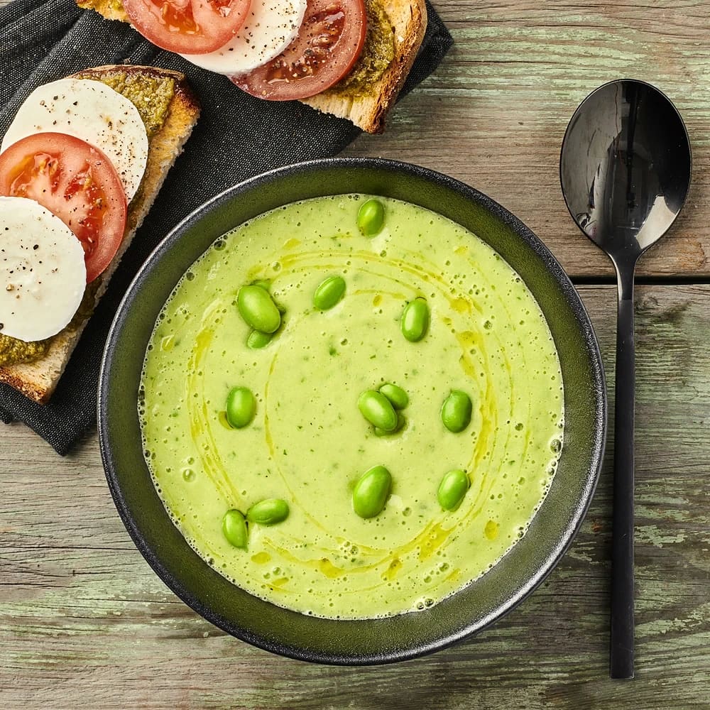 Kall soppa med edamamebönor och yoghurt
