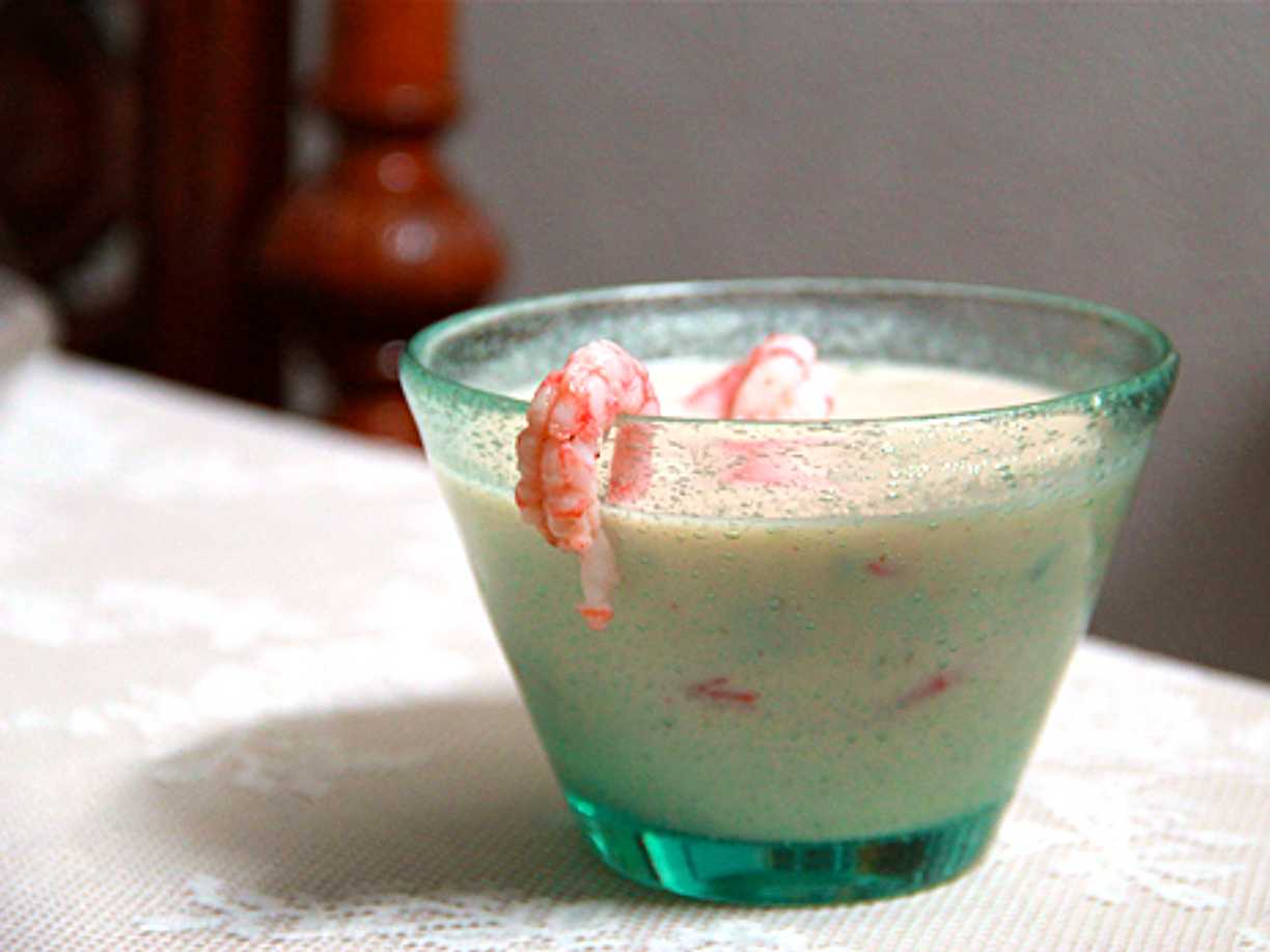 Kall melonsoppa med kräftor
