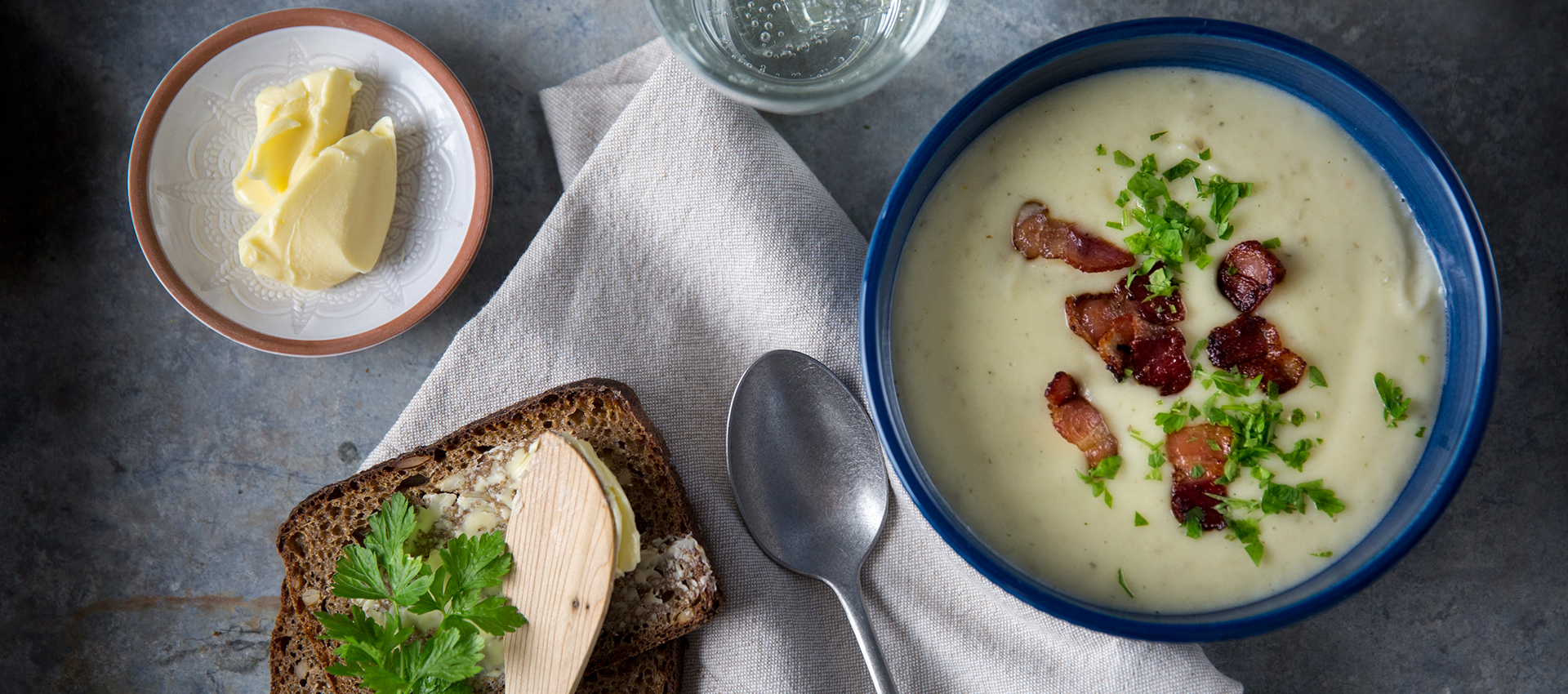 Potatis- & purjolökssoppa med ramslökstoast