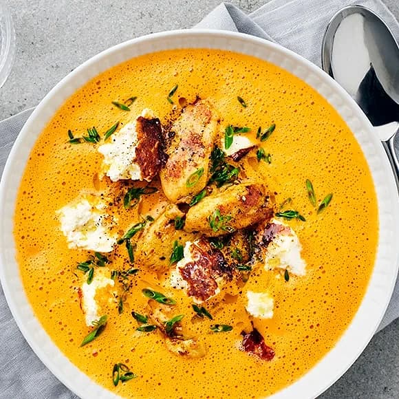 Tomatsoppa med currystekt kyckling och paneer
