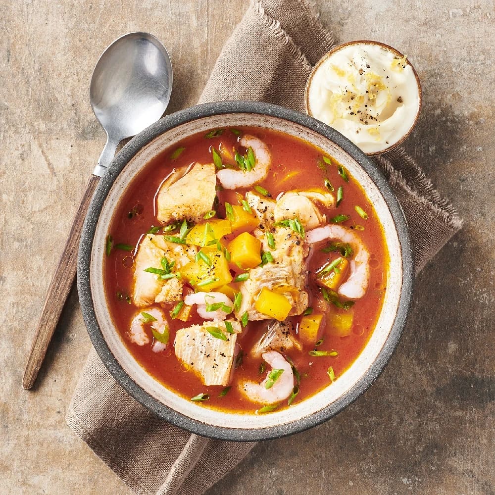 Fisksoppa med citronmajonnäs