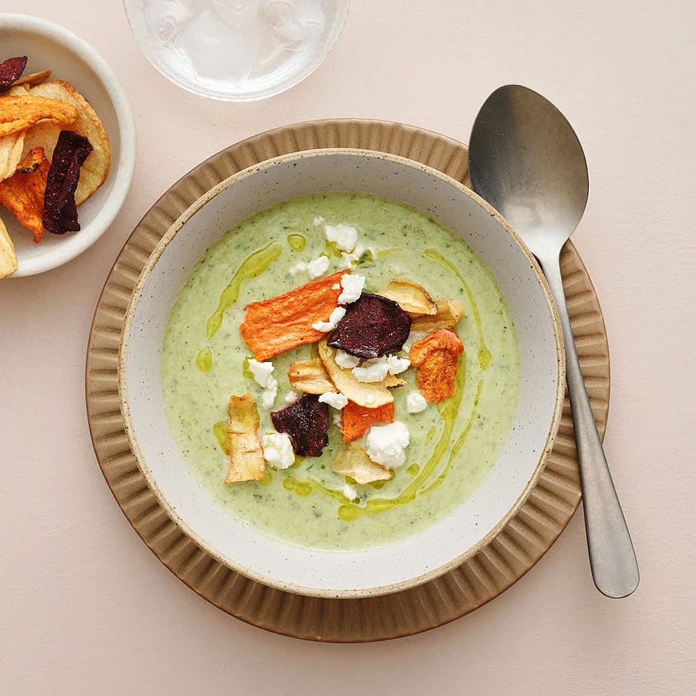 Potatis- och jordärtskockssoppa med äppelkrisp