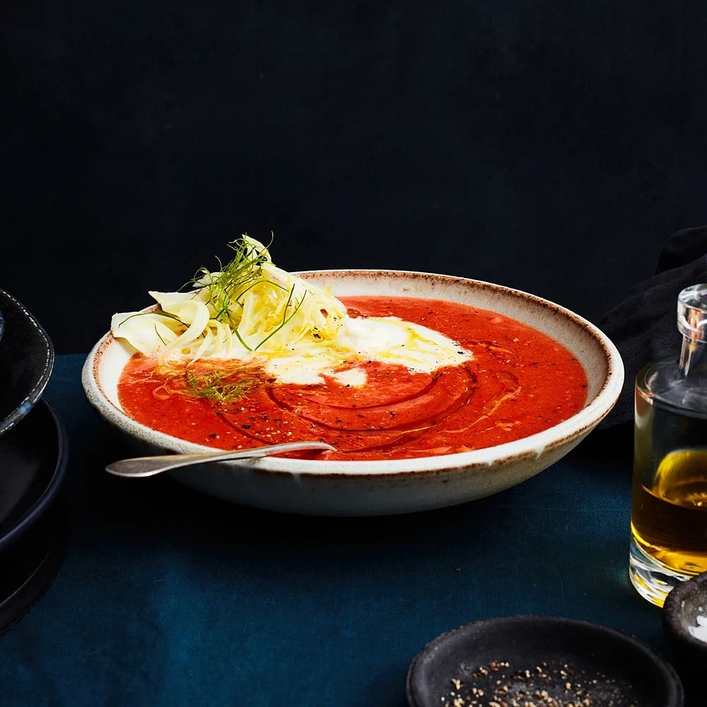 Tomatsoppa med fänkål och vispad mozzarella