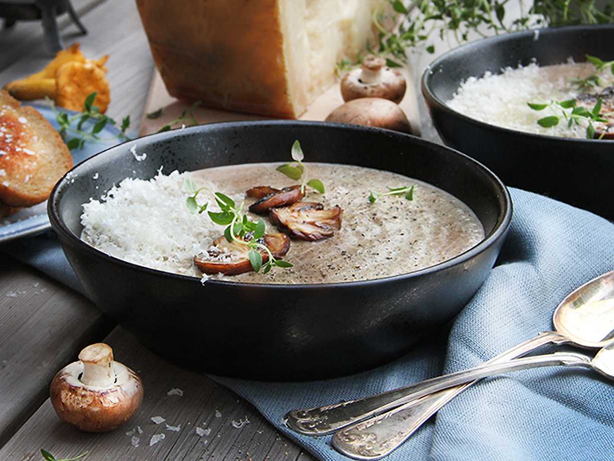 Lyxig svampsoppa med lagrad ost