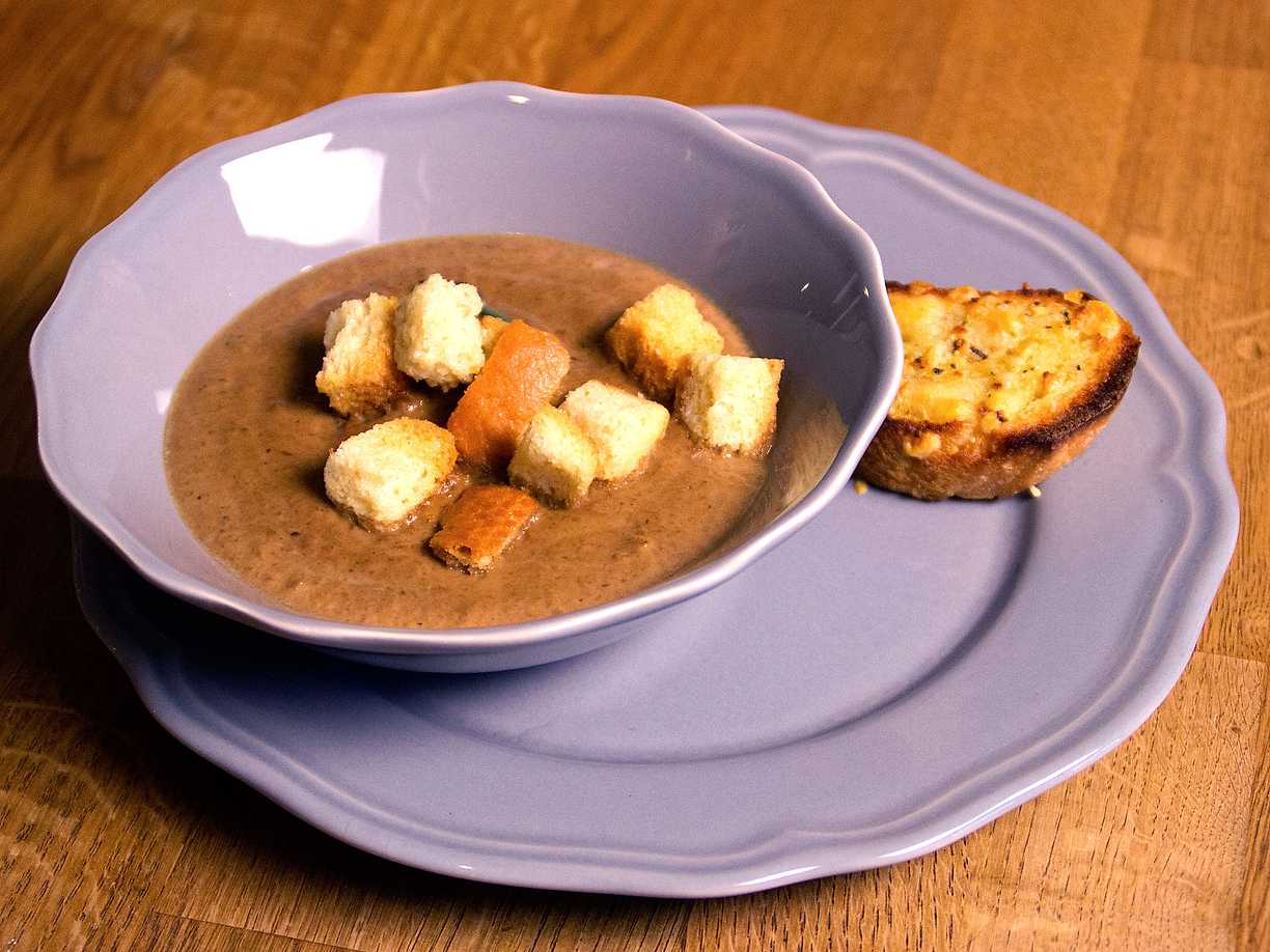 Krämig svampsoppa med vitlöksbröd