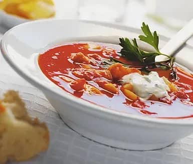 Tomatsoppa med gratinerade nachos