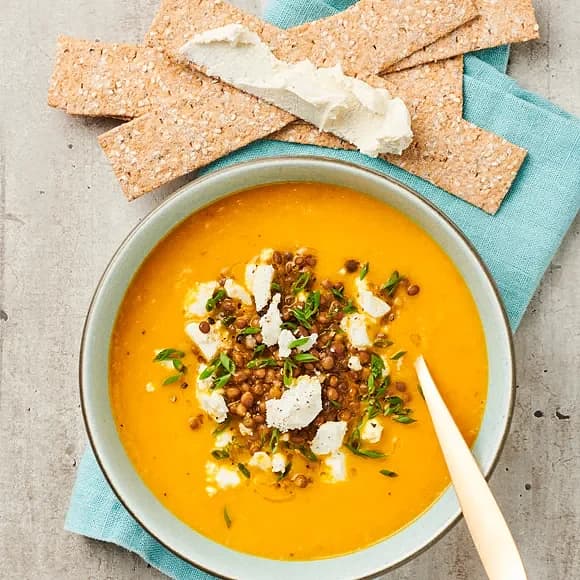 Morotsoppa med fetaost och linser