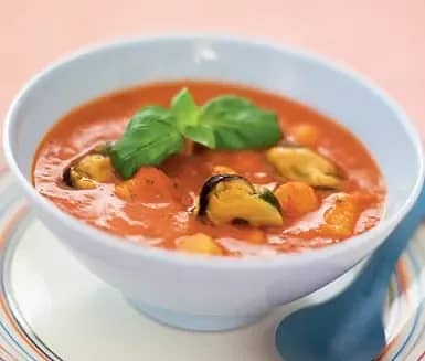Tomatsoppa med lax & musslor