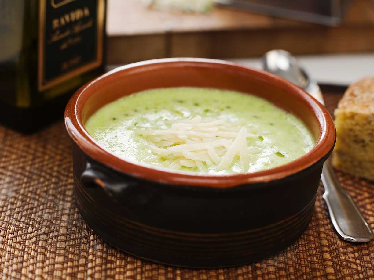 Gräddig grön ärtsoppa med basilika