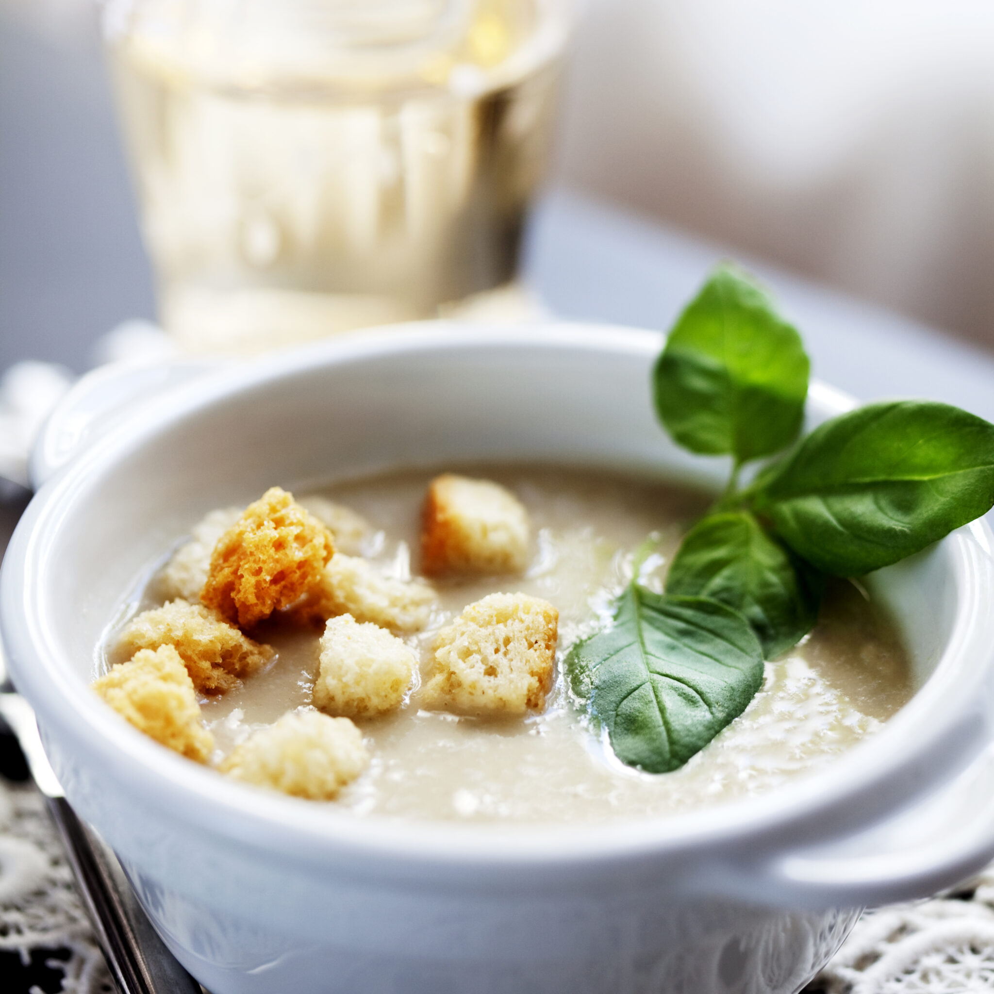 Tryffelsmaksatt blomkålssoppa med mörkt bröd