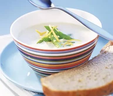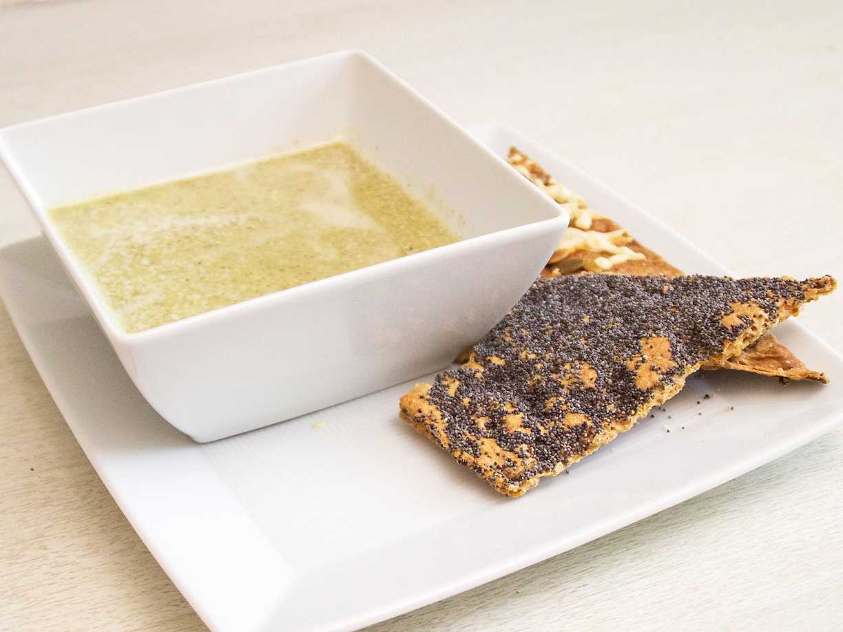 Potatis- och purjolökssoppa med bönhummus på knäcke
