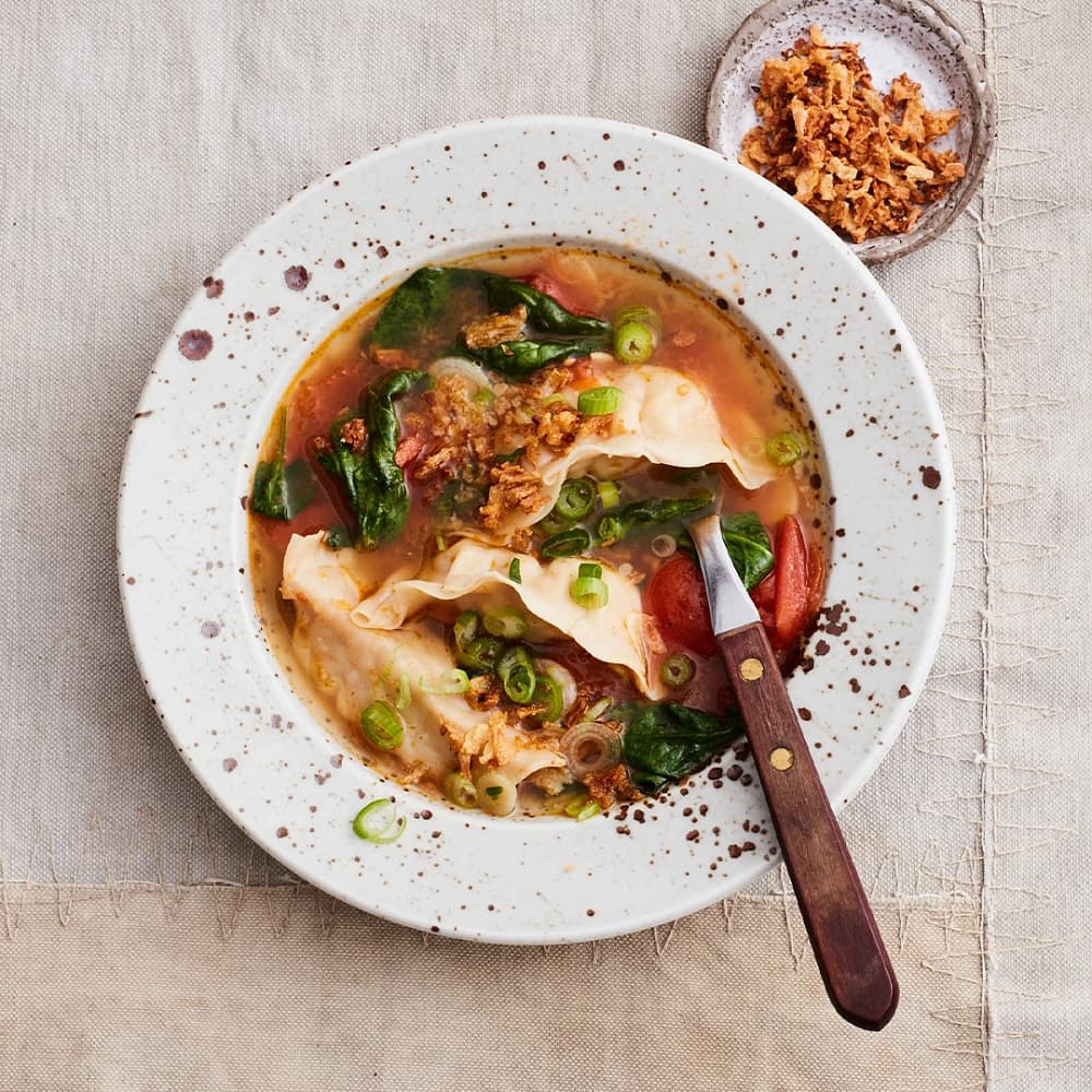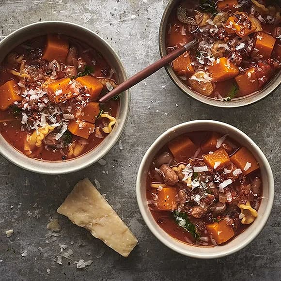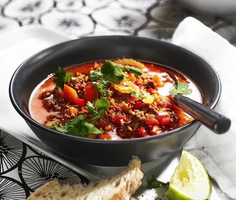 Kryddig kikärts- och sötpotatissoppa med tomatquesadilla