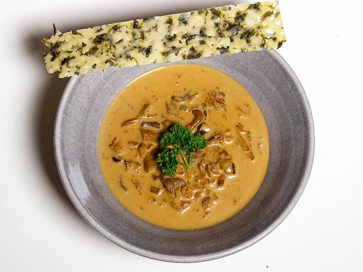 Rostad vitlök- och blomkålssoppa med baconkrisp