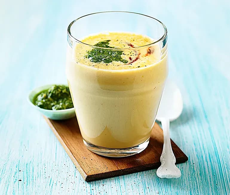 Blomkålssoppa med rostad vitlök och basilikaolja