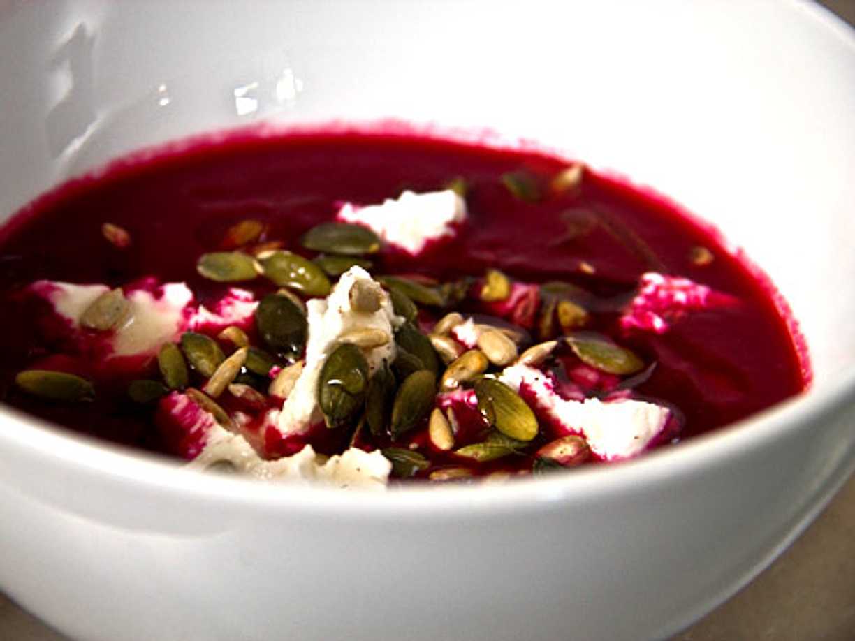 Mixad rotfruktssoppa med quesadillas och gremolata