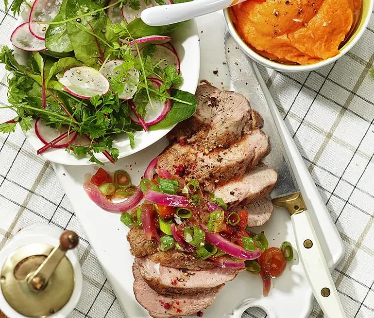 Pepparstekt fläskytterfilé med sötpotatisaioli
