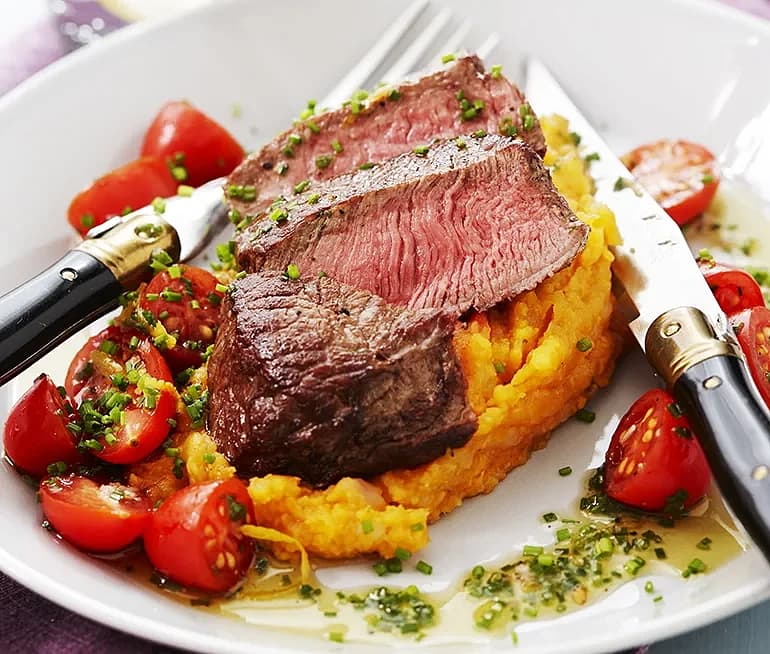 Ugnsstekt älgfilé med sötpotatispuré & madeirasås