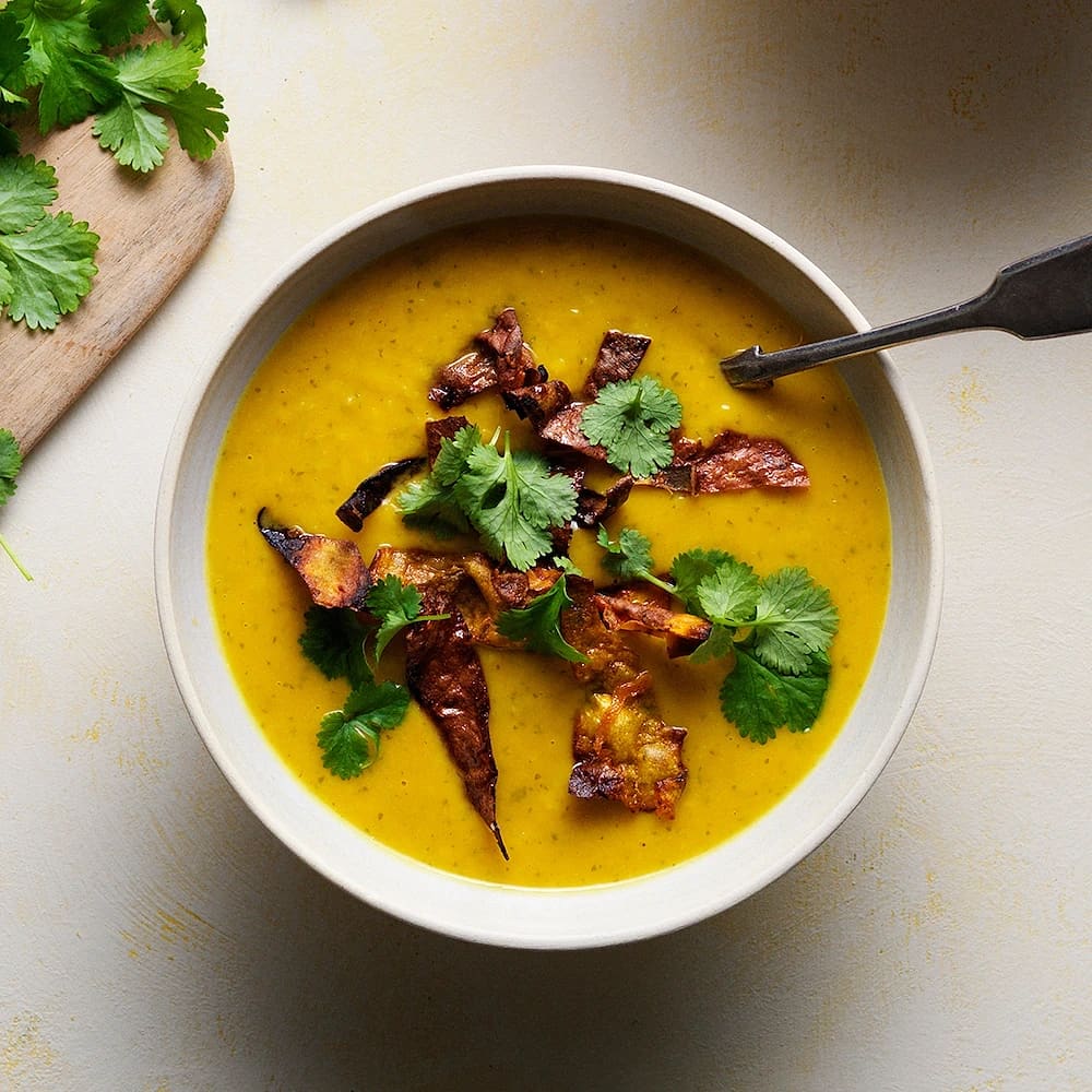 Kryddig kikärts- och sötpotatissoppa med tomatquesadilla