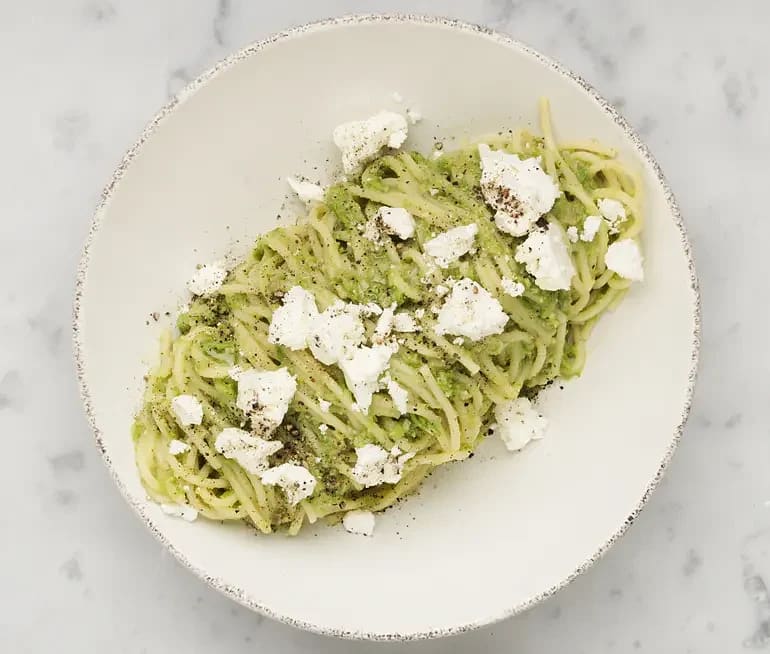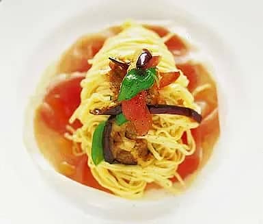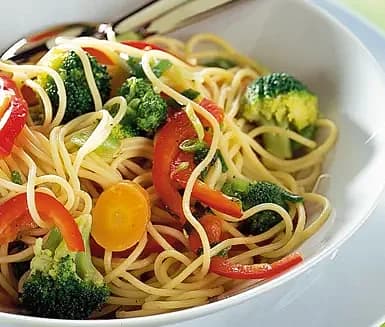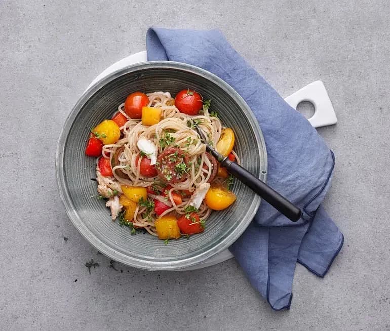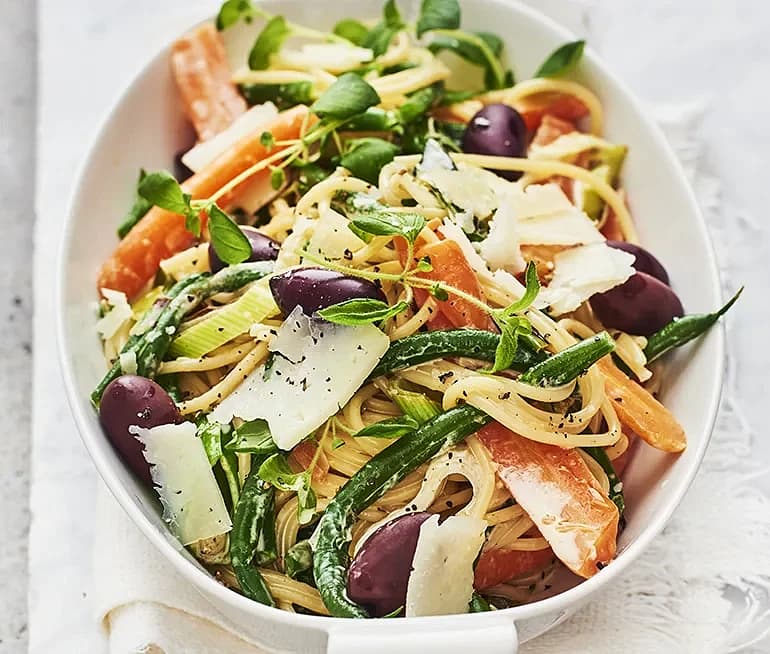 Spaghetti med balsamicostekta grönsaker och mozzarella