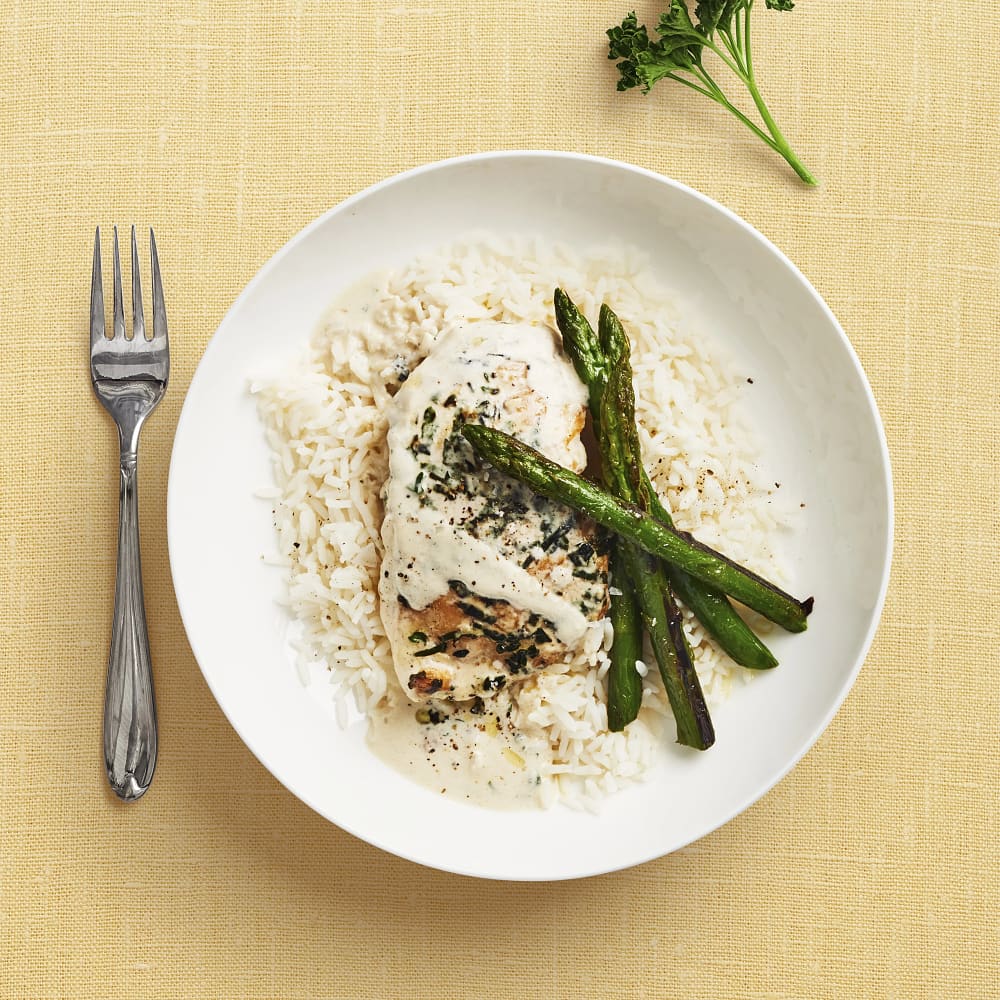 Krämig persiljekyckling med sparris