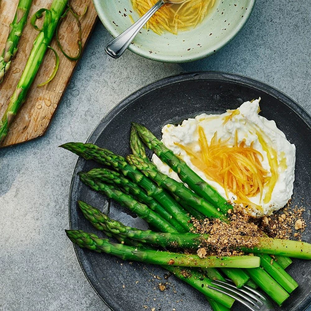 Stekt sparris med örtricotta