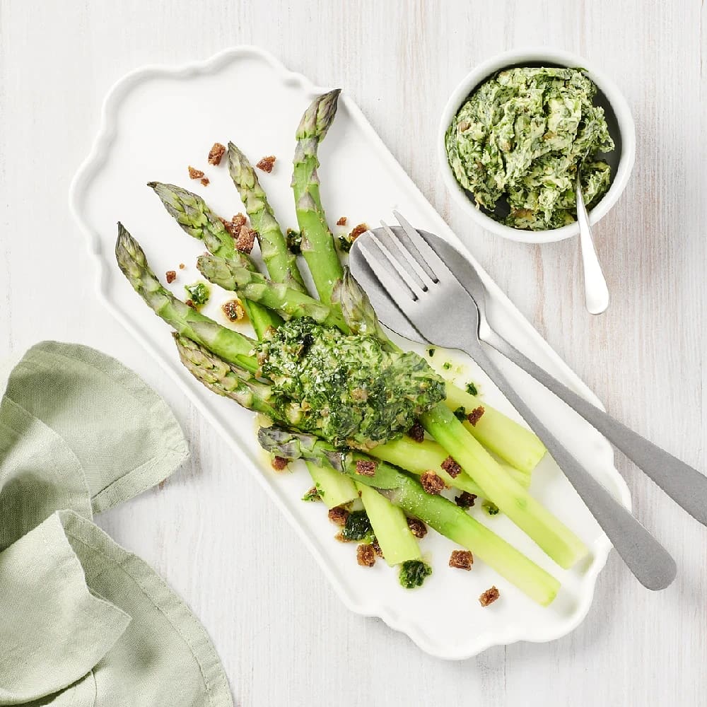 Ljummen sparris med svensk pesto