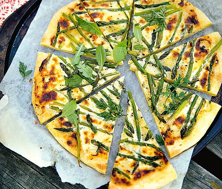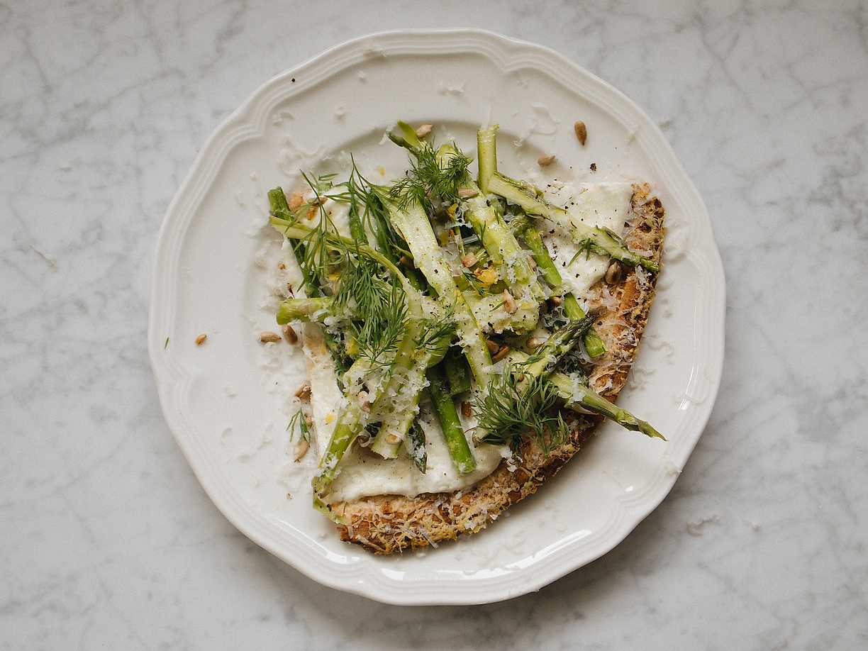 Pizza bianco med sparris