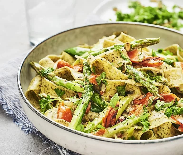 Krämig Barilla Spaghetti Eko med sparris och getost