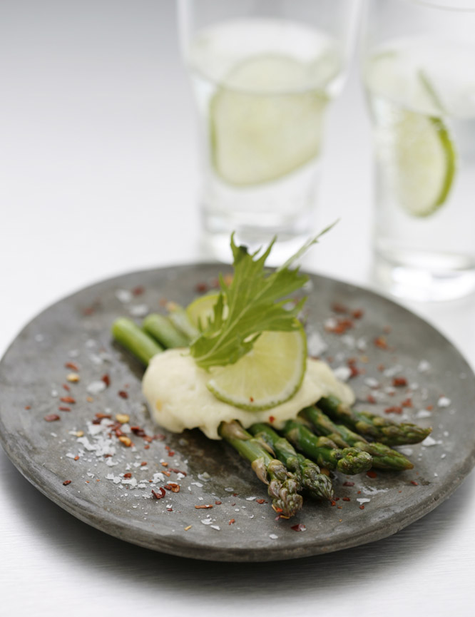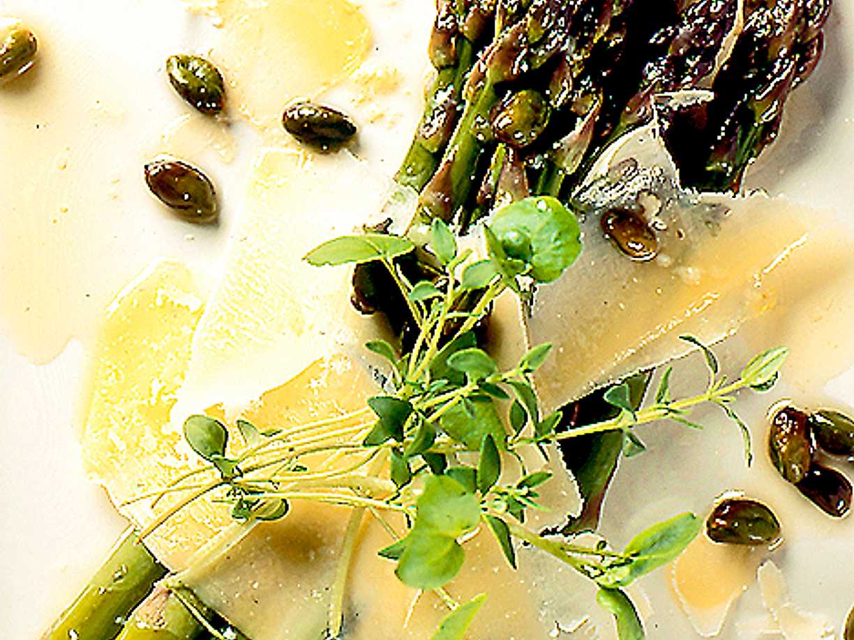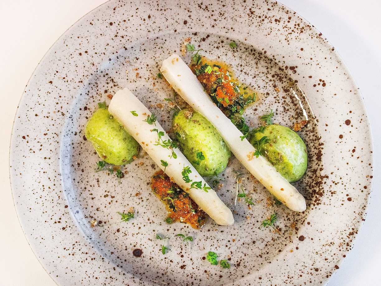Vit sparris med ramslöksmajonnäs och romvinägrett