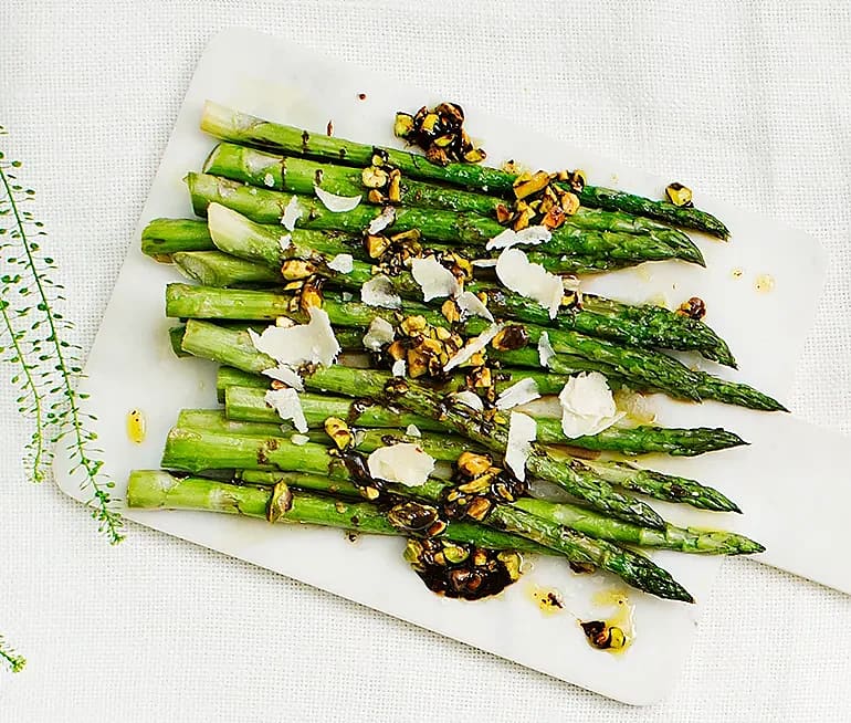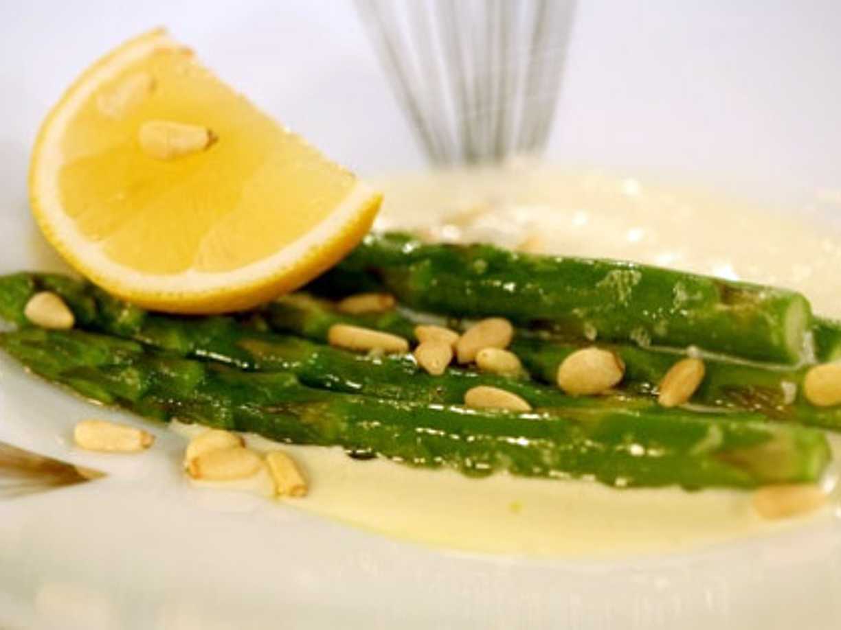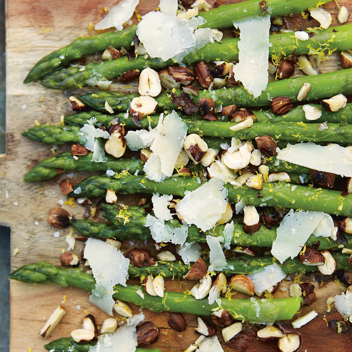 Ugnsbakad sparris med smörfrästa hasselnötter