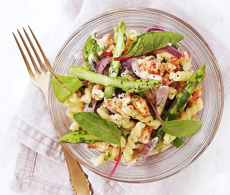 Linguine med pestomarinerad ost, sparris och pinjenötter