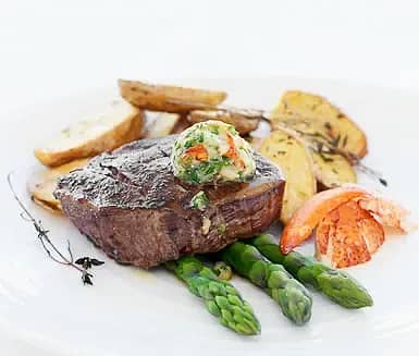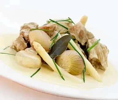 Kalventrecôte med brynt smörkräm och picklad sparris