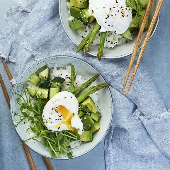 Pocherat ägg med kryddig lax, sparris och körvelhollandais