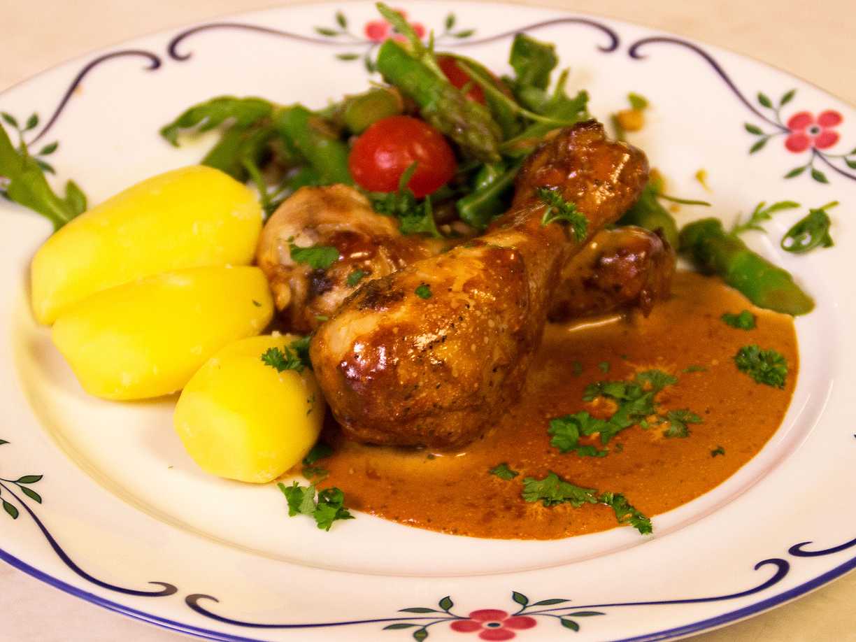 Salviastekt kycklinglårfilé med sparris och råstekt potatis