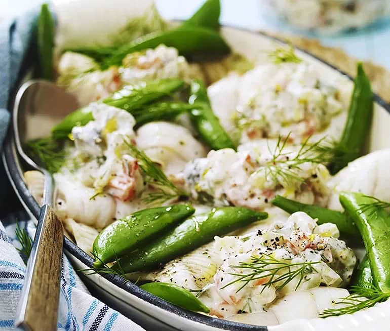 Hummergratinerad spätta med broccoli på Tinas vis