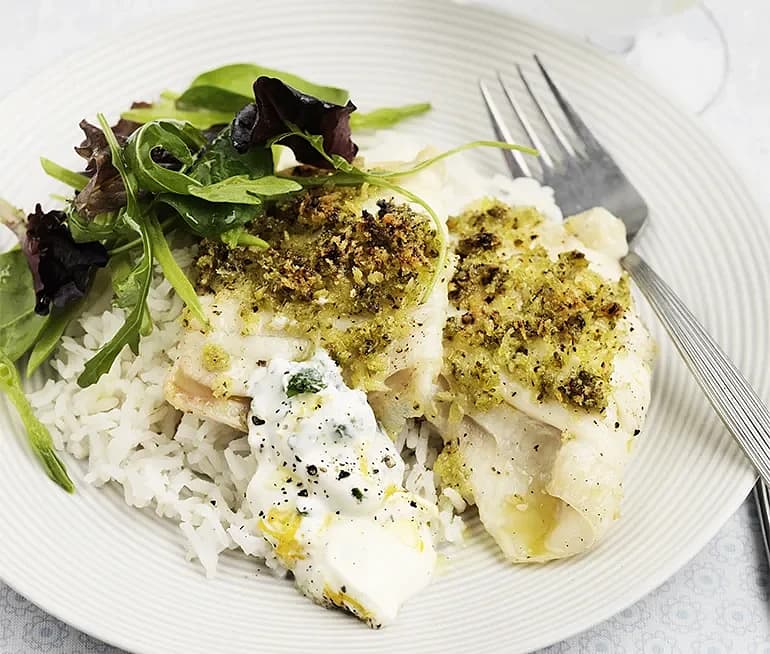 Stekt spätta med remouladyoghurt