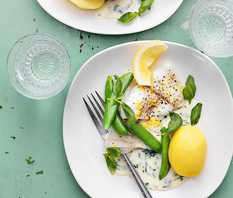 Citronbakad spätta med örtsås